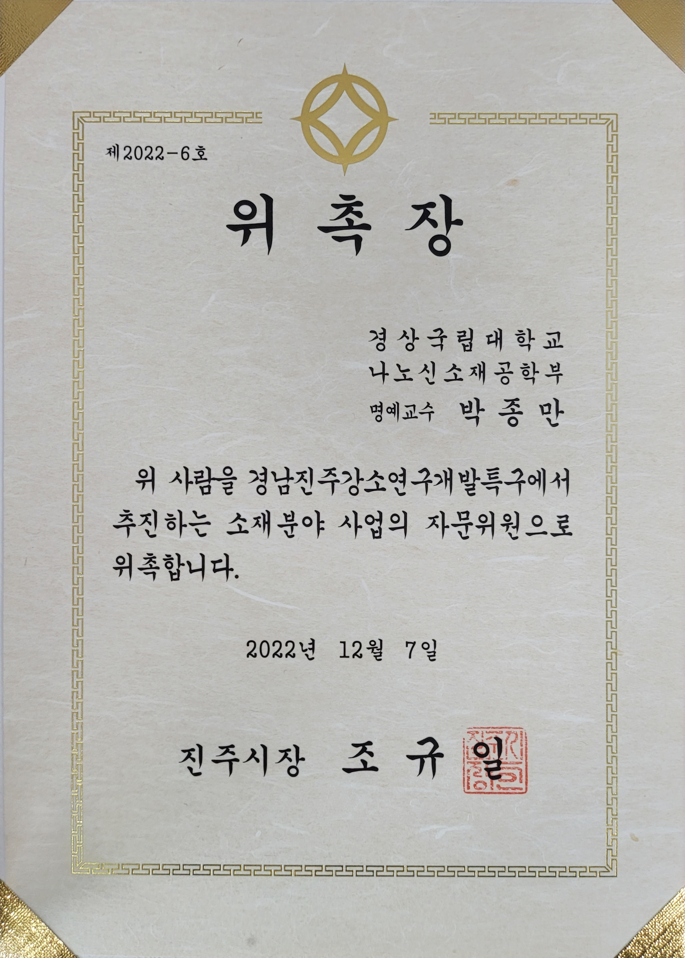 Appointment of advisory committee members for Gyeongnam Jinj…