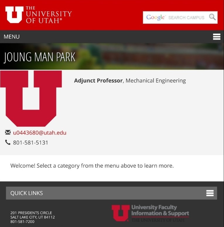• E-mail : jmpark@gnu.ac.kr , jmpark@mech.utah.edu